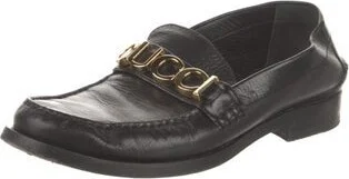 Gucci Leather Loafers Black Round-Toes Designer Fit: Flats by Gucci typically run a half size small. Unfortunately, due to restrictions, this item may not be eligible for shipping in all areas. Read more