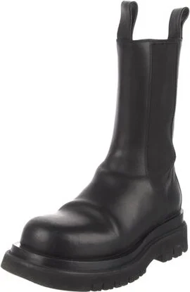 Bottega Veneta Leather Mid-Calf Chelsea Boots Black Rubber Trim Square-Toes Platform Unfortunately, due to restrictions, this item may not be eligible for shipping in all areas. Read more