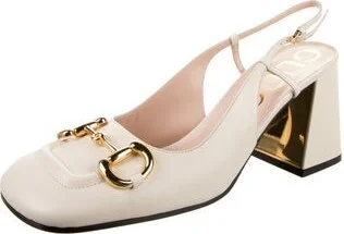 Gucci Leather Slingback Pumps Neutrals Round-Toes Straps & Buckle Closure at Ankles Includes Box & Dust Bag Unfortunately, due to restrictions, this item may not be eligible for shipping in all areas. Read more