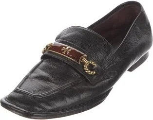 Tory Burch Leather Loafers Black Round-Toes Designer Fit: This designer typically runs true to size. Unfortunately, due to restrictions, this item may not be eligible for shipping in all areas.