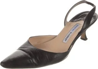 Manolo Blahnik Leather Slingback Pumps Black Semi-Pointed Toes Includes Box Fit: This style typically runs narrow and a half size small. Unfortunately, due to restrictions, this item may not be eligib Read more