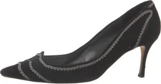 Manolo Blahnik Suede Pumps Black Semi-Pointed Toes Includes Dust Bag Fit: This style typically runs narrow and a half size small.