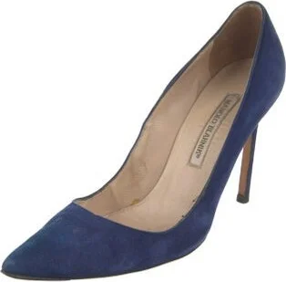 Manolo Blahnik Suede Pumps Blue Semi-Pointed Toes Fit: This style typically runs narrow and a half size small. Read more