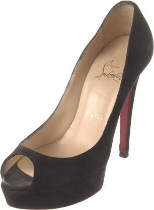 Christian Louboutin Suede Pumps Black Peep-Toes Platform Designer Fit: This style typically runs a half size to a full size small.