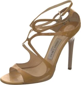 Jimmy Choo Patent Leather Sandals Neutrals Multistrap & Buckle Closure at Ankles Fit: This style typically runs a full size small.