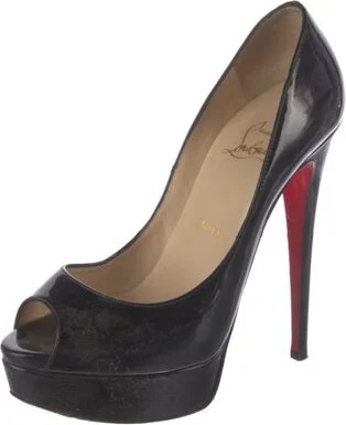 Christian Louboutin Patent Leather Pumps Black Peep-Toes Platform Includes Box & Dust Bag Designer Fit: This style typically runs a half size to a full size small. Read more
