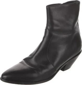 Saint Laurent Leather Ankle Boots Black Semi-Pointed Toes Concealed Zip Closure at Sides Fit: This style typically runs a half size small. Unfortunately, due to restrictions, this item may not be eligible for shipping in all areas.