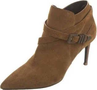 Saint Laurent Suede Ankle Boots Brown Pointed-Toes Wrap-Around Straps Fit: This style typically runs a half size small. Read more