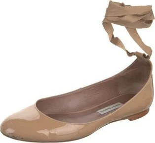Tabitha Simmons Patent Leather Ballet Flats Neutrals Semi-Pointed Toes Wrap-Around Straps & Tie Closures