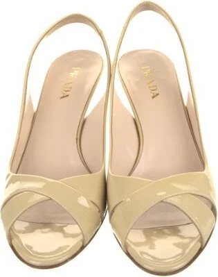 Prada Patent Leather Slingback Sandals Neutrals Straps Includes Box & Dust Bag Designer Fit: Sandals by Prada typically run a half size small. Read more