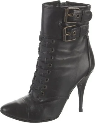 Balmain Leather Mid-Calf Lace-Up Boots Black Semi-Pointed Toes Wrap-Around Straps & Lace-Up Closure at Uppers Unfortunately, due to restrictions, this item may not be eligible for shipping in all area Read more