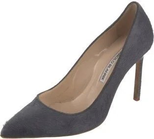 Manolo Blahnik Ponyhair Pumps Blue Leather Trim Pointed-Toes Fit: This style typically runs narrow and a half size small.