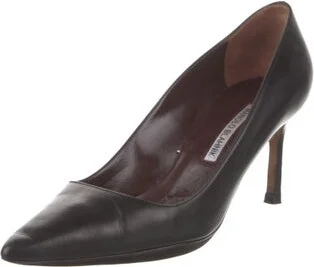 Manolo Blahnik Leather Pumps Black Semi-Pointed Toes Fit: This style typically runs narrow and a half size small. Unfortunately, due to restrictions, this item may not be eligible for shipping in all areas.