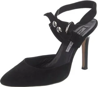 Brian Atwood Suede Slingback Pumps Black Round-Toes Wrap-Around Straps & Buckle Closure at Ankles Includes Box