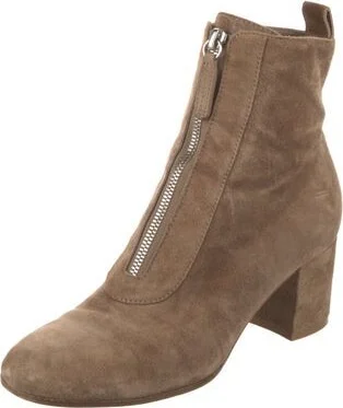 Gianvito Rossi Suede Ankle Lace-Up Boots Brown Round-Toes Exposed Zip Closure at Uppers Includes Box & Dust Bag Designer Fit: Boots by Gianvito Rossi typically run a half size small.