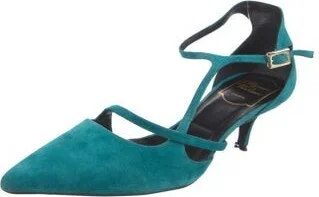 Roger Vivier Suede T-Strap Pumps Blue Pointed-Toes Wrap-Around Straps & Buckle Closure at Sides Designer Fit: Pumps by Roger Vivier typically run a half size small. Read more