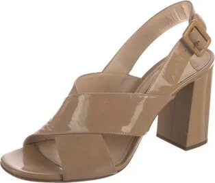 Prada Patent Leather Slingback Sandals Neutrals Crossover Straps Designer Fit: Sandals by Prada typically run a half size small. Read more