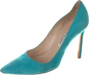 Manolo Blahnik Suede Pumps Blue Pointed-Toes Fit: This style typically runs narrow and a half size small. Read more