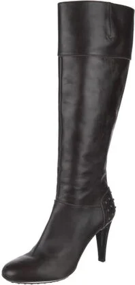 Tod's Leather Knee-High Boots Black Semi-Pointed Toes Concealed Zip Closure at Sides Unfortunately, due to restrictions, this item may not be eligible for shipping in all areas.