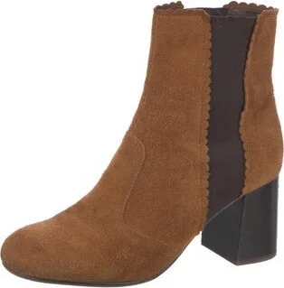 See by Chloé Suede Ankle Chelsea Boots Brown Colorblock Pattern Round-Toes Read more
