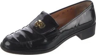 Salvatore Ferragamo Patent Leather Loafers Black Round-Toes Fit: This style typically runs a half size small.