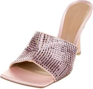Bottega Veneta Leather Slides Pink Crystal Embellishments Designer Fit: Sandals by Bottega Veneta typically run a half size small. Unfortunately, due to restrictions, this item may not be eligible for Read more