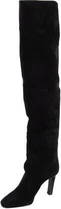 Saint Laurent Suede Over-The-Knee Boots Black Semi-Pointed Toes Includes Box & Dust Bag Fit: This style typically runs a half size small.