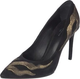 Louis Vuitton Suede Pumps Black Printed Pointed-Toes Designer Fit: Pumps by Louis Vuitton typically run a half size small.