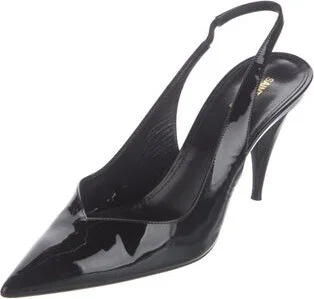 Saint Laurent Patent Leather Slingback Pumps Black Pointed-Toes Straps Includes Dust Bag Designer Fit: Pumps by Saint Laurent typically run a half size small. Read more