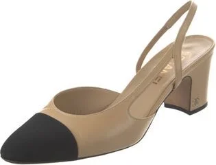 Chanel Leather Slingback Pumps Neutrals Interlocking CC Logo Semi-Pointed Toes with Grosgrain Trim Designer Fit: This style typically runs narrow and a half size small. Unfortunately, due to restricti Read more