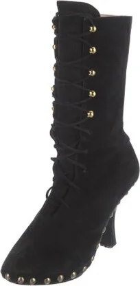 Manolo Blahnik Suede Ankle Lace-Up Boots Black Semi-Pointed Toes with Studded Accents Lace-Up Closure at Uppers Designer Fit: This style typically runs a full size small.