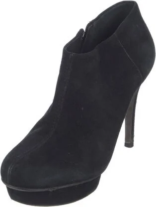 Tory Burch Suede Ankle Boots Black Round-Toes Platform Exposed Zip Closure at Sides Designer Fit: This designer typically runs true to size. Read more
