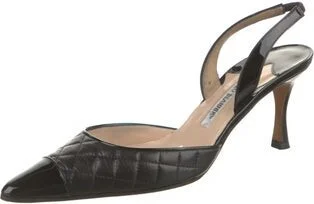 Manolo Blahnik Leather Slingback Pumps Black Semi-Pointed Toes Straps Includes Box & Dust Bag Fit: This style typically runs narrow and a half size small. Unfortunately, due to restrictions, this item Read more