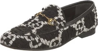 Gucci Tweed Loafers Black Printed Horsebit Accent Leather Trim Round-Toes with Leather Trim Embellishment Designer Fit: Flats by Gucci typically run a half size small. Read more