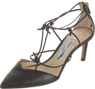 Jimmy Choo Leather T-Strap Pumps Black Pointed-Toes Wrap-Around Straps & Zip Closures at Shafts Fit: This style typically runs a half size small. Unfortunately, due to restrictions, this item may not Read more