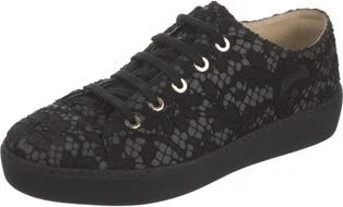 Chanel Lace Low Top Sneakers Black Interlocking CC Logo Leather Trim Round-Toes Lace-Up Closure at Uppers Includes Dust Bag Designer Fit: This style typically runs narrow and a half size small. Read more