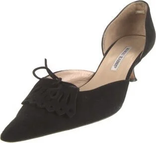 Manolo Blahnik Suede D'Orsay Pumps Black Pointed-Toes with Bow Accents Fit: This style typically runs narrow and a half size small. Read more