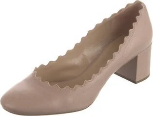 Chloé Leather Pumps Neutrals Round-Toes with Scalloped Accent Includes Box Designer Fit: Pumps by Chloé typically run a half size small. Unfortunately, due to restrictions, this item may not be eligible for shipping in all areas.