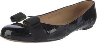 Salvatore Ferragamo Patent Leather Ballet Flats Blue Vara Bow Accent Grosgrain & Bow Accents Semi-Pointed Toes Includes Box Fit: This style typically runs a half size small. Read more
