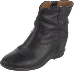 Isabel Marant Leather Ankle Boots Black Round-Toes Unfortunately, due to restrictions, this item may not be eligible for shipping in all areas. Read more