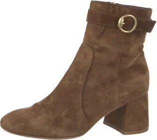 Gianvito Rossi Suede Ankle Boots Brown Square-Toes Wrap-Around Straps & Concealed Zip Closure at Sides Designer Fit: Boots by Gianvito Rossi typically run a half size small.