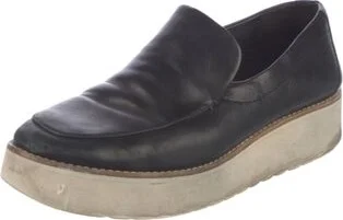 Vince Leather Slip-On Sneakers Black Round-Toes Platform Unfortunately, due to restrictions, this item may not be eligible for shipping in all areas. Read more