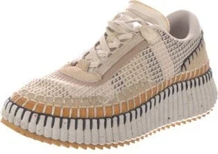Chloé Low Top Sneakers Neutrals Printed Round-Toes Lace-Up Closure at Uppers Size not listed, estimated from measurements. Designer Fit: Sneakers by Chloé typically run a half size small. Read more