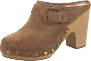 Veronica Beard Suede Mules Brown Round-Toes with Studded Accents Platform Buckle Closure At Uppers Read more