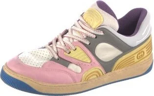 Gucci Leather Low Top Athletic Sneakers Neutrals Interlocking G Logo Rubber Trim Round-Toes Lace-Up Closure at Uppers Designer Fit: Sneakers by Gucci typically run a half size large. Unfortunately, due to restrictions, this item may not be eligible for shipping in all areas.