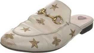 Gucci Leather Mules Neutrals 1955 Horsebit Accent Round-Toes with Embroidered Accent Designer Fit: Flats by Gucci typically run a half size small. Unfortunately, due to restrictions, this item may not Read more