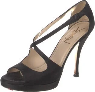 Yves Saint Laurent Rive Gauche Satin Sandals Black Platform Crossover Straps & Button Closure at Sides Read more