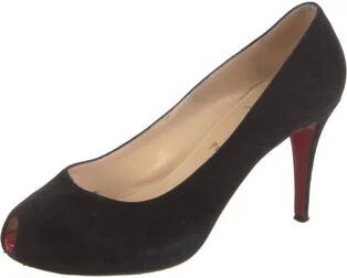 Christian Louboutin Suede Pumps Black Round-Toes with Cutout Accent Designer Fit: This style typically runs a half size to a full size small. Read more