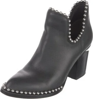 Alexander Wang Leather Ankle Boots Black Semi-Pointed Toes with Studded Accents Unfortunately, due to restrictions, this item may not be eligible for shipping in all areas. Read more