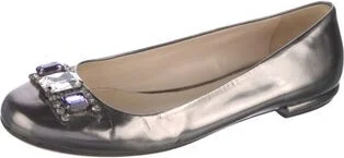 Prada Patent Leather Ballet Flats Grey Round-Toes Designer Fit: Flats by Prada typically run a half size small.